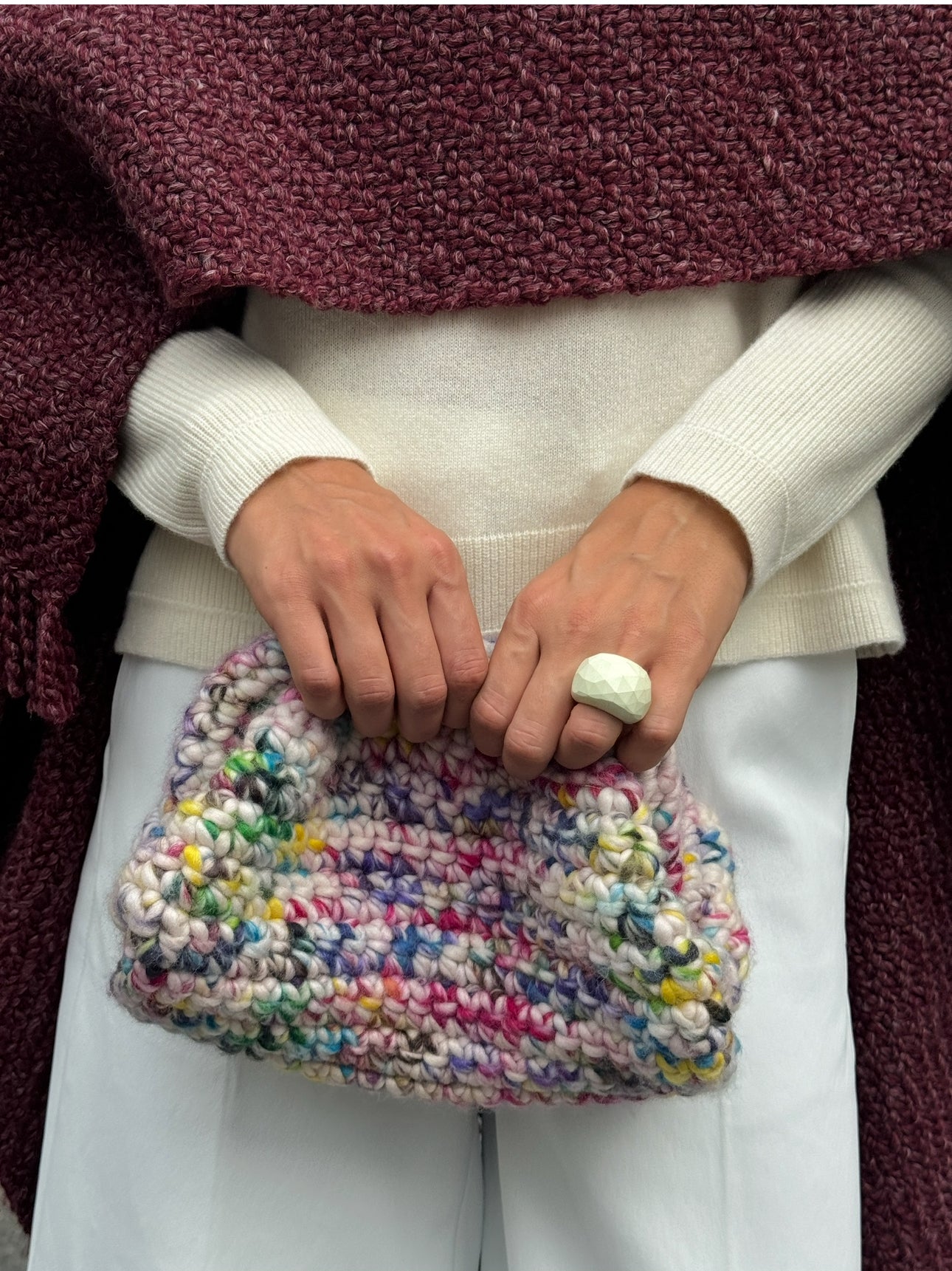 Con espíritu italiano, corazón español, y manos argentino-uruguayas, Mica Maffei teje cada pieza, una por una, utilizando sólo materia prima elemental como el algodón o el lino y tintes naturales.