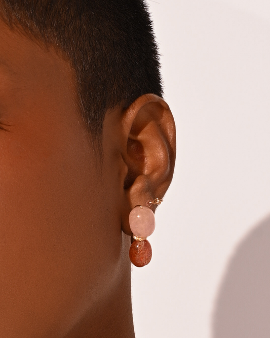 BROMELIA EARRINGS #1 (30mm) - Morganite & Sun Stone