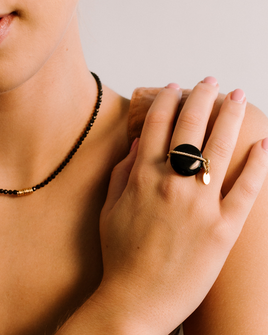 CALATEA RING #1 (30mm) - Black Agate & Yellow Gold