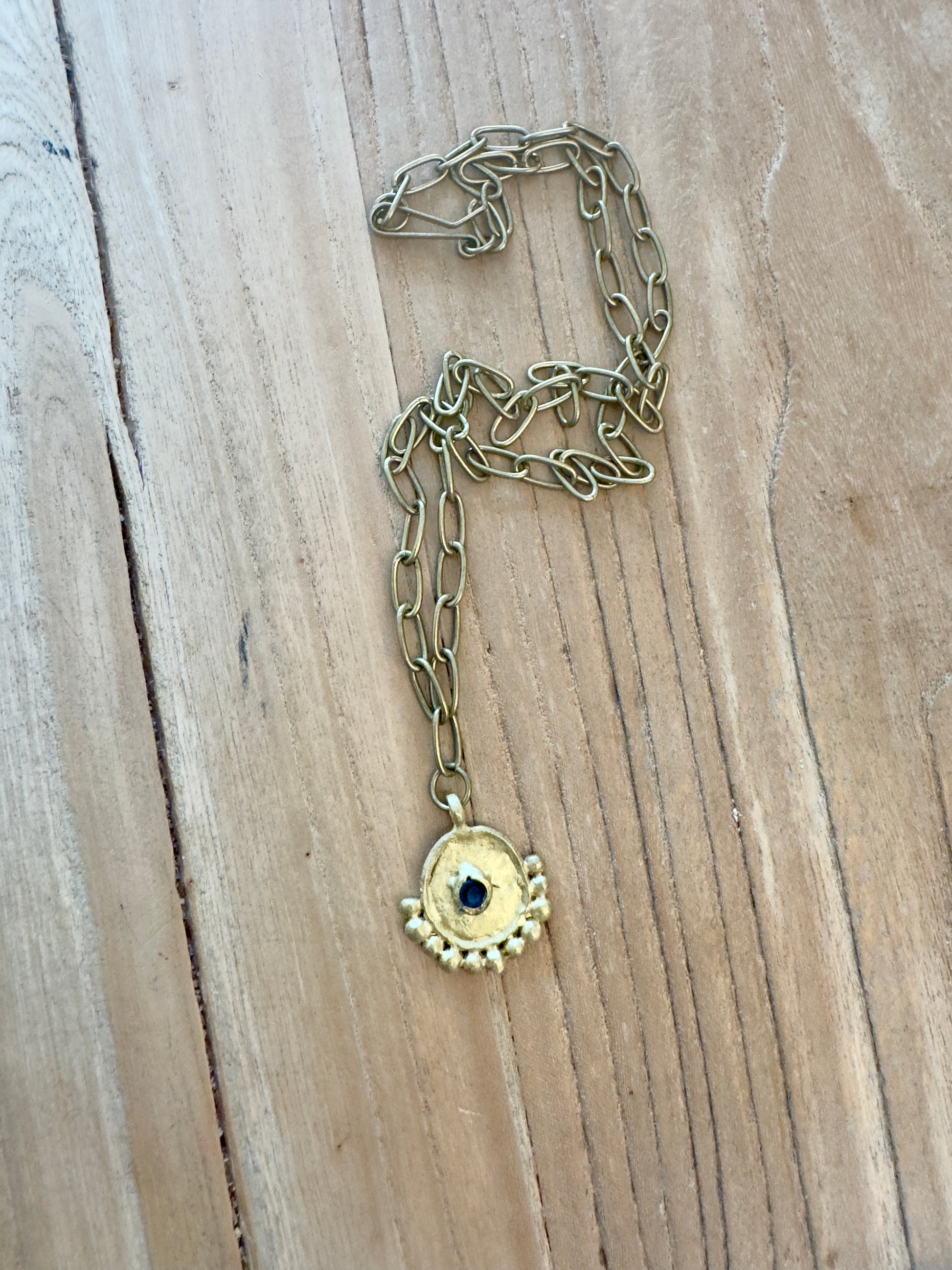 - Material: cadena y dije en bronce pulido. Pieza totalmente realizada 100% a mano y pulida una por una.