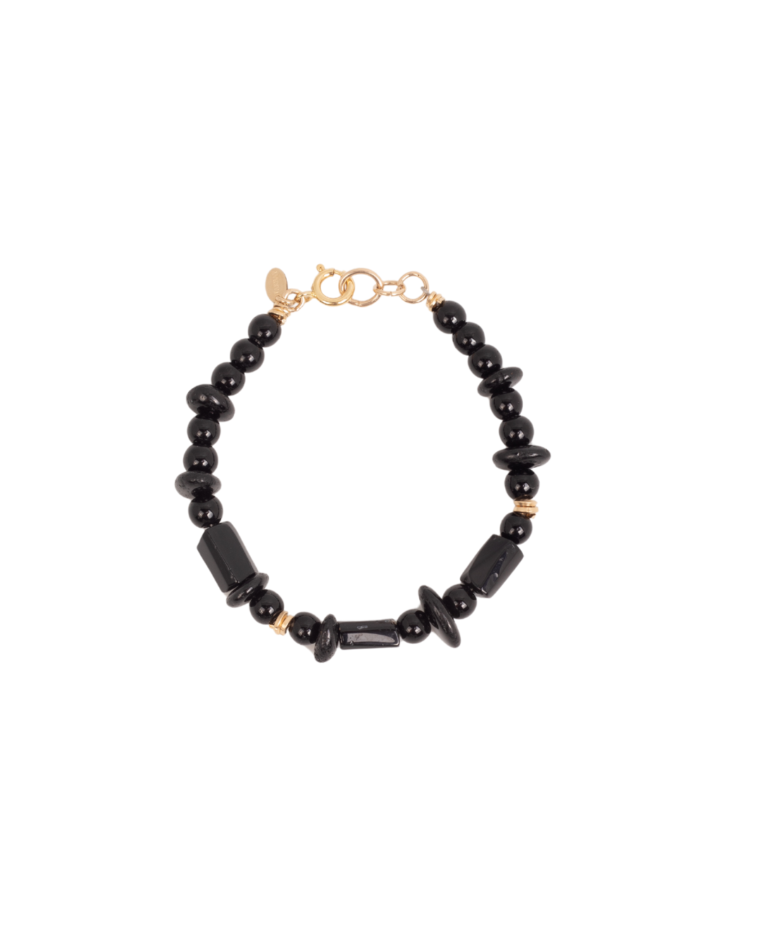 Elevate your style with our Aruma Bracelet #1. Crafted with unique Rainbow Obsidian and Black Spinell, this bracelet exudes elegance and luxury. Complete your sophisticated look with this must-have jewel.