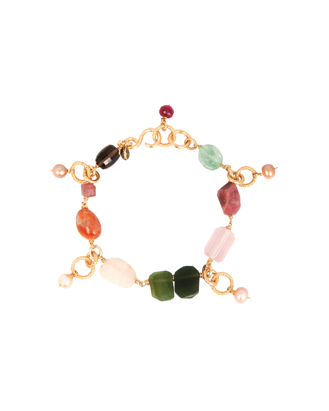 14K GOLD FILLED PERLA SALMON, CUARZO AHUMADO, KUNZITE, CUARZO ROSADO, CUARZO CHERRY