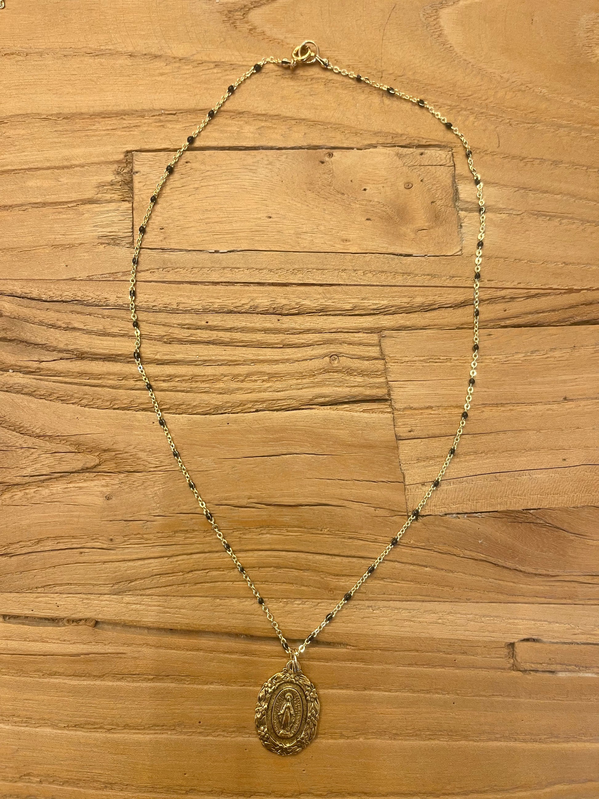 Cadena bulgara de bronce con medalla virgen milagrosa.