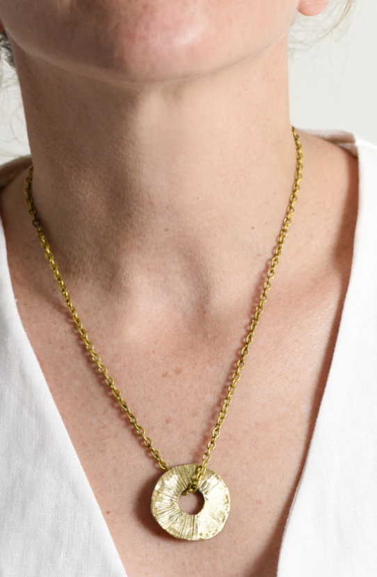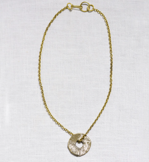 - Material: cadena y dije en bronce pulido. Pieza totalmente realizada 100% a mano y pulidad una por una.