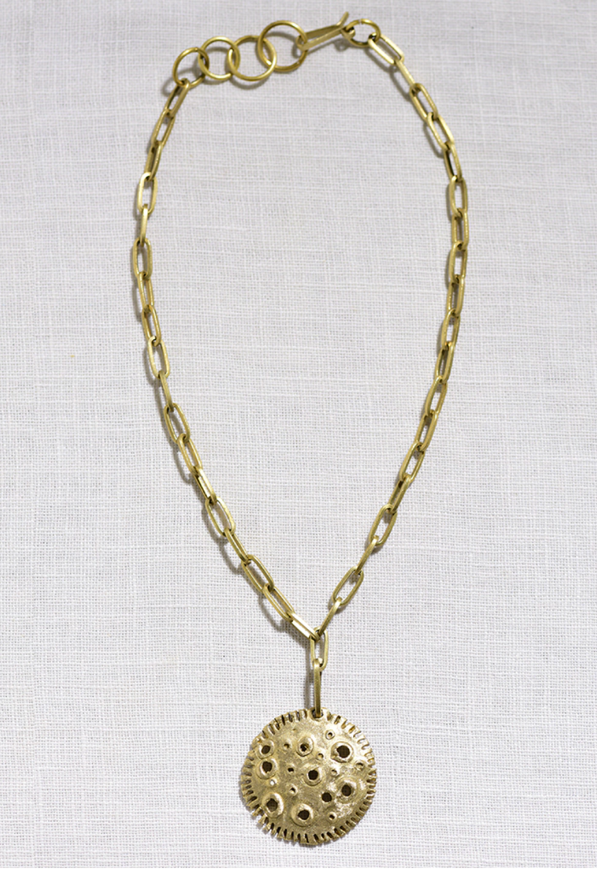 - Material: cadena y dije en bronce pulido. Pieza totalmente realizada 100% a mano y pulidad una por una.