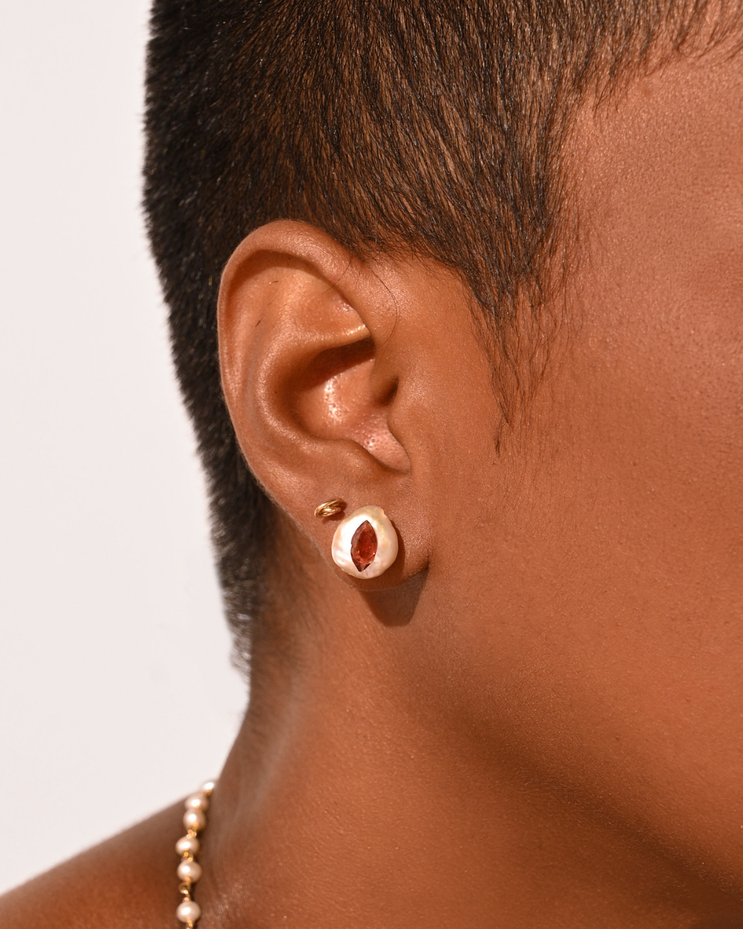 KESHI EARRINGS #8 (12mm) - Garnet & Perls