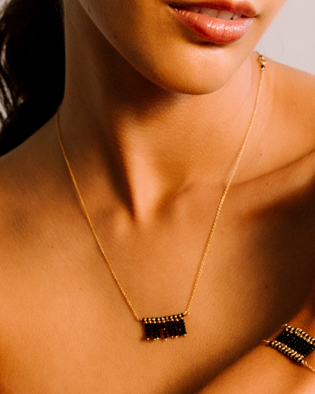 Indulge in luxury with the Miranda Necklace #1. The black spinell beads exude style and sophistication, making this piece truly unique. Elevate any look with the elegant touch of this necklace.