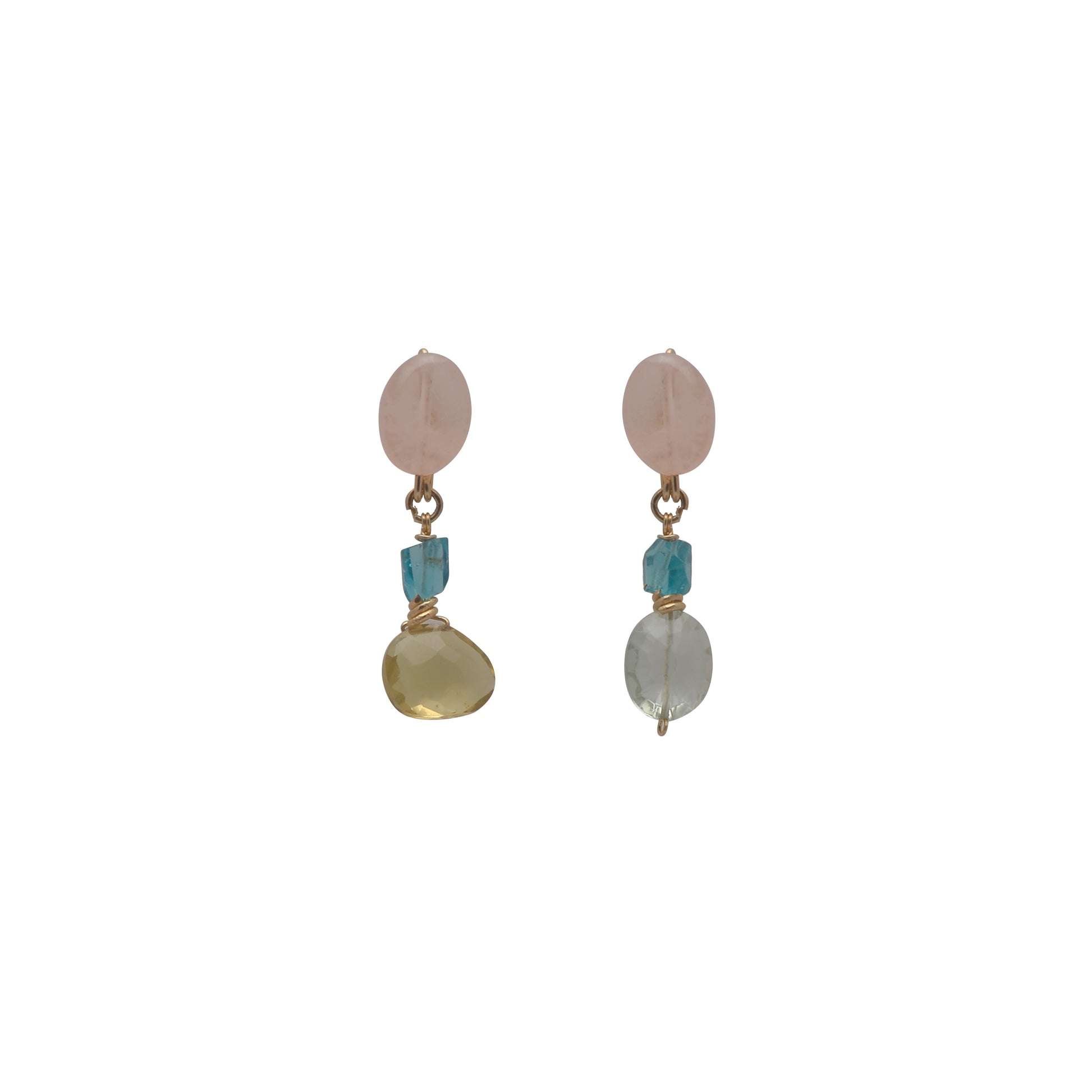 | Z. TROPICAL OCEAN DRIVE BOTÓN-GUINDA SS, C/ CUARZO, APARITE, CUARZO LIMÓN, AMATISTA VERDE, 14GF LAMINADO DORADO |