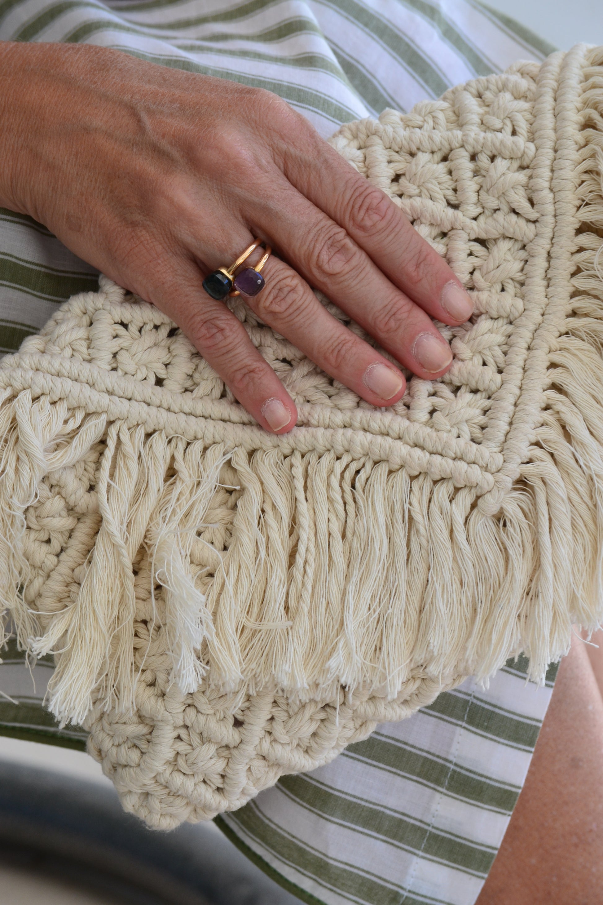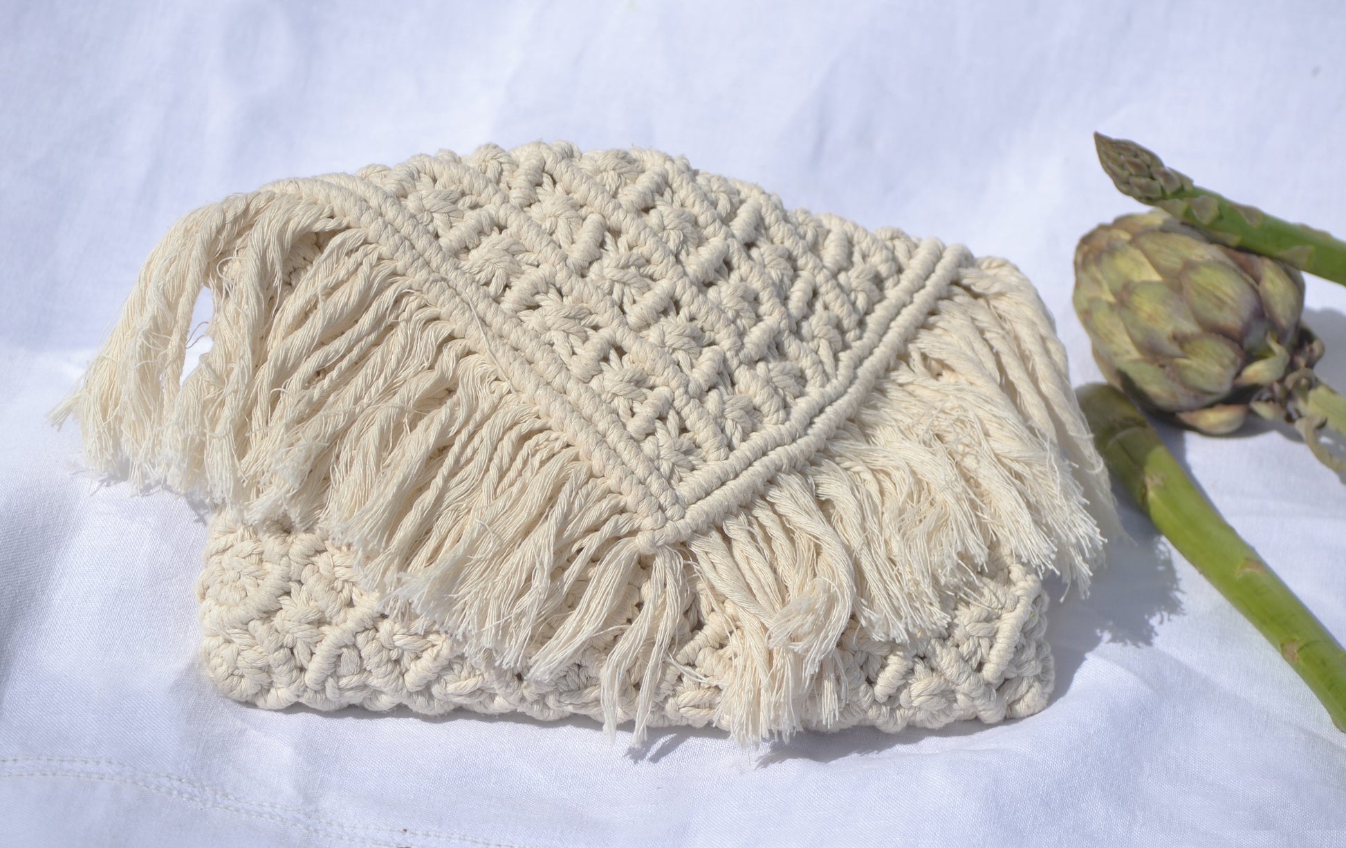 Bolso hecho a mano solo en una pieza, cordón de algodón 100%, 3mm 200gr y rafia color natural 100gr.