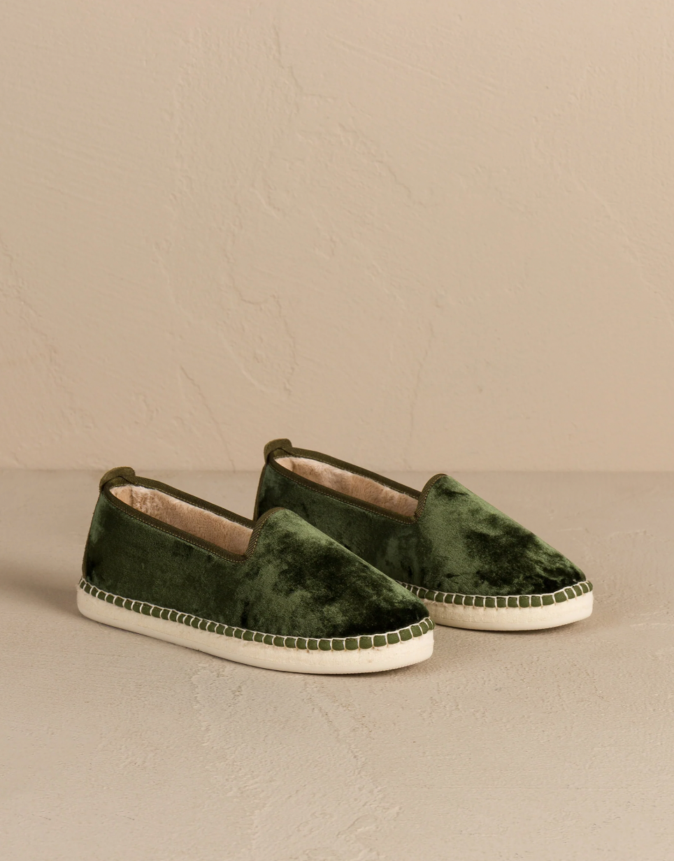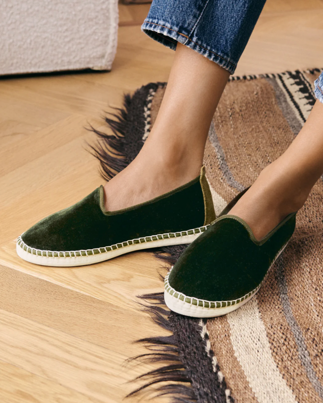 Our flat espadrilles, expertly crafted with silk velvet and faux fur, provide the perfect combination of elegance and comfort.