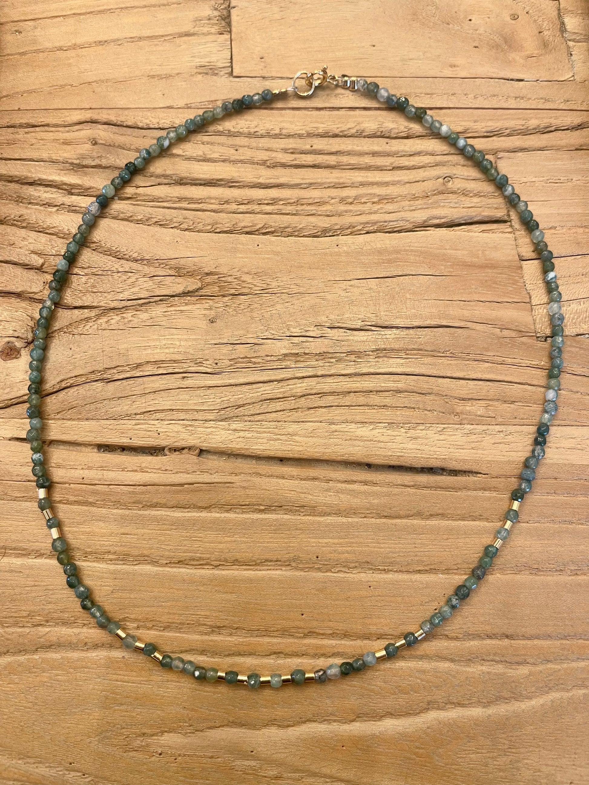 Collar de piedras de 2mm color nude con separadores tubo bañados en oro. Largo 40cm